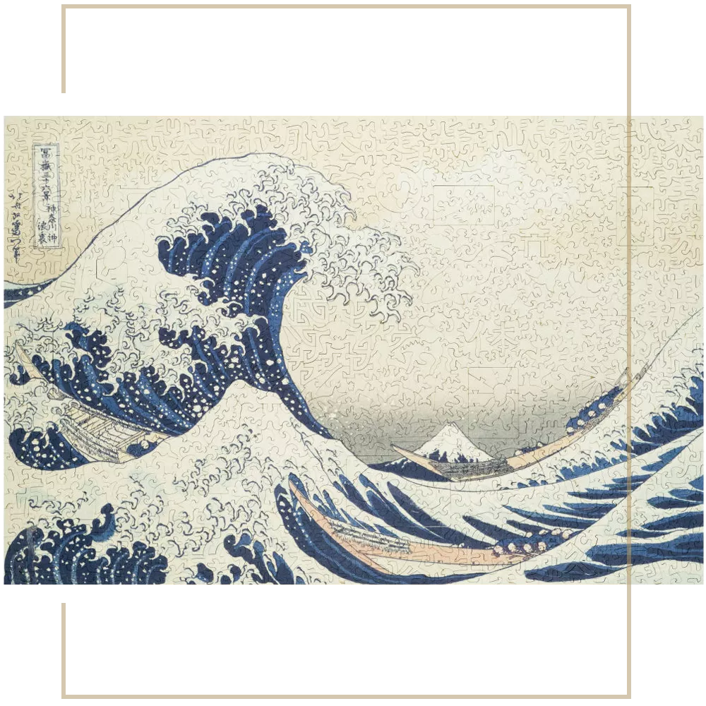 Discover a timeless masterpiece from the Land of the Rising Sun that has inspired impressionists and countless artists across various styles. Thanks to the advanced Unitouch printing technology, every droplet of The Great Wave exhibits a stunning resolution and texture, mirroring the texture of the original painting as if crafted by the hand of Hokusai himself. Feel his distinct style in every pieces of the sea foam and sky. Within this puzzle, you'll find 18 thematic mini-puzzles each showcasing the artist's renowned paintings and ideas.