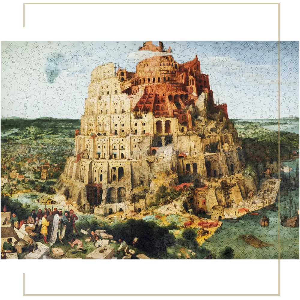 Bruegel's minute details and incredible colors will immerse you in the world of ancient biblical legends and the Dutch Renaissance. We followed the master's footsteps and used layer-by-layer volumetric printing to achieve the effect of multiple layers. Among the whimsy pieces there are Bruegel's paintings and hobbies and hidden thematic mini-puzzles. Step by step you will build your Tower.