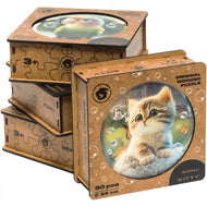 Our puzzles are made from a pressured HDF that is 3mm thick. This material is eco-friendly, high-quality and durable. It doesn’t deform and doesn’t give splinters (like with plywood).