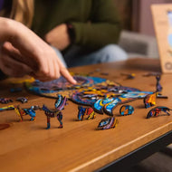 Each puzzle in the Animals series comes in four or three sizes. The bigger the size — the harder it is to build the puzzle and the more interesting the story inside it gets. The smallest ones are like trailers to awesome movies, while the Royal Size puzzles will take you on a journey with their own narratives and plot twists. The cuts of each size of each puzzle are unique and different. They are made by creative designers to take you deeper into the story and bring you as many amazing discoveries as possible.