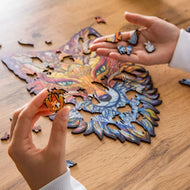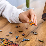 The Fiery Fox’s look and character can light up the night and your heart. She outwitted everyone: bears, wolves, hares, and, of course, other foxes. Some of them are her prey, others are foes, but all of them are no match for her speed, style, and wit. That’s why she hides all these animals inside her. The forest is her game, and she plays it effortlessly. Each piece of the puzzle fits perfectly into place and is assembled into a stunningly detailed illustration. And the light aroma of wood will not let you forget where this colorful beauty came from.