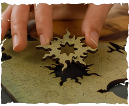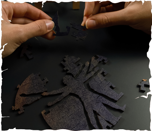 The puzzle has a premium-quality packaging: a lacquered wooden box and a craft paper with Da Vinci’s drafts and sketches. Each box contains a mini-easel with a copy of the painting — your clue for assembling the puzzle.