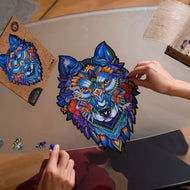 Our puzzles are made from a pressured HDF that is 3mm thick. This material is eco-friendly, high-quality and durable. It doesn’t deform and doesn’t give splinters (like with plywood).