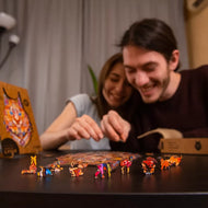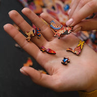 Each puzzle in the Animals series comes in four or three sizes. The bigger the size — the harder it is to build the puzzle and the more interesting the story inside it gets. The smallest ones are like trailers to awesome movies, while the Royal Size puzzles will take you on a journey with their own narratives and plot twists. The cuts of each size of each puzzle are unique and different. They are made by creative designers to take you deeper into the story and bring you as many amazing discoveries as possible.