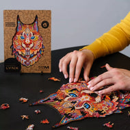 Step out into the wild with the Gentle Lynx. Smell the smoke from a campfire, hear the chirping of forest birds and sit down with us for a second in a tent. Our Lynx is called gentle, but she is a real predator. The forest is her hunting ground, and its inhabitants are her prey. When assembling this puzzle, you will have the qualities of a real lynx, too: attentiveness, patience, and the ability to notice the beauty of nature. In your paws, oh sorry, hands, there will be a rabbit, a gopher, a fish, a raven, and many other forest dwellers. The puzzle is made of durable wood, and the unique illustration is printed with a UV print shade that won't fade. Ready to take a walk in the woods? Tread lightly, and happy hunting!