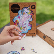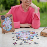 Our puzzles are made from a pressured HDF that is 3mm thick. This material is eco-friendly, high-quality and durable. It doesn’t deform and doesn’t give splinters (like with plywood).